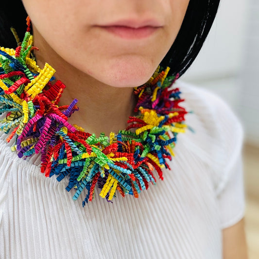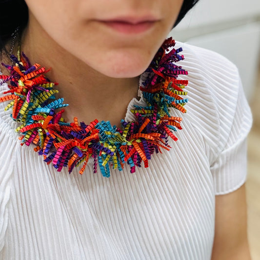 Collana Twist - Multicolor, Artigianale in Tessuto Plissettato, Lunghezza Regolabile, Moda per Tutte le Stagioni
