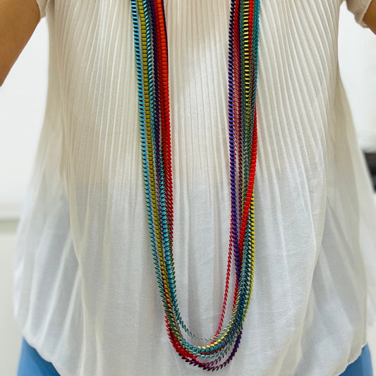 Collana Twist - Multicolor in Tessuto Plissettato, Lunghezza 50/55 Cm, Stile Elegante e Versatile