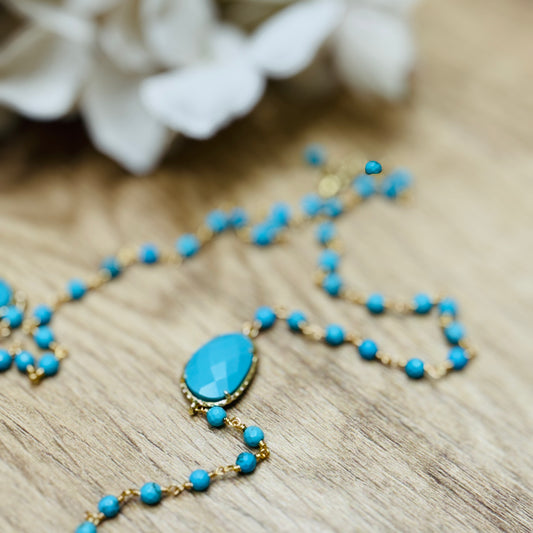 Collana Pastiglietta - Turchese Con Micro Pietre E Pietre Semipreziose, Lunghezza 90 Cm