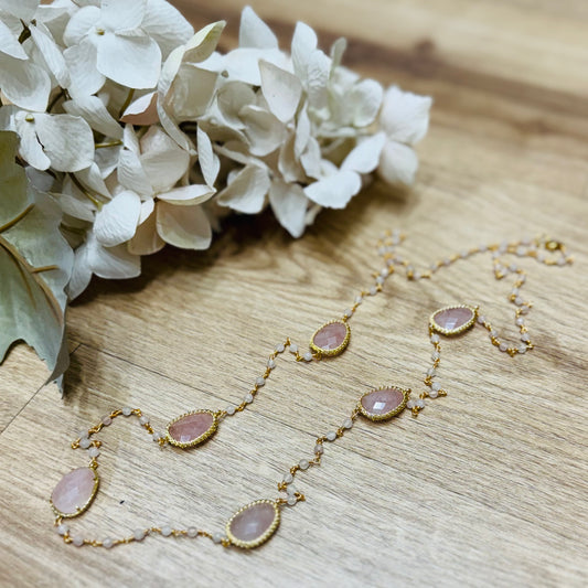 Collana Pastiglietta - Quarzo Rosa con Micro Pietre Semi Preziose, Lunghezza 90 cm