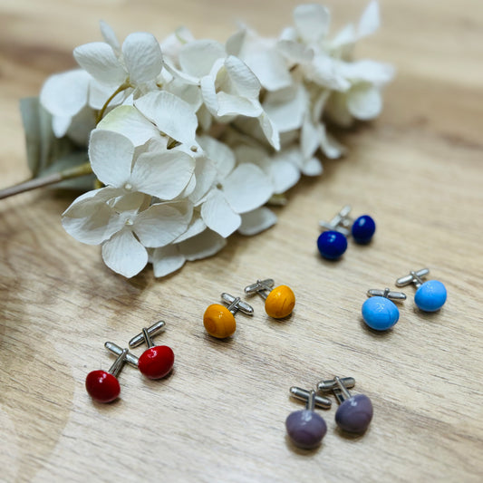 Gemelli Arancioni Artigianali in Acciaio con Inserto in Vetro di Murano, Eleganza Unica e Colorata