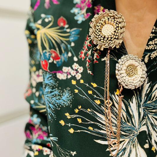 Doppia Spilla - Oro, Argento, Artigianale in Pelle Italiana con Catena Rimovibile da 17 cm